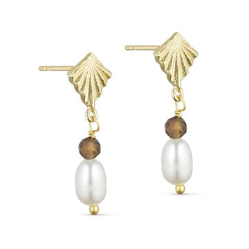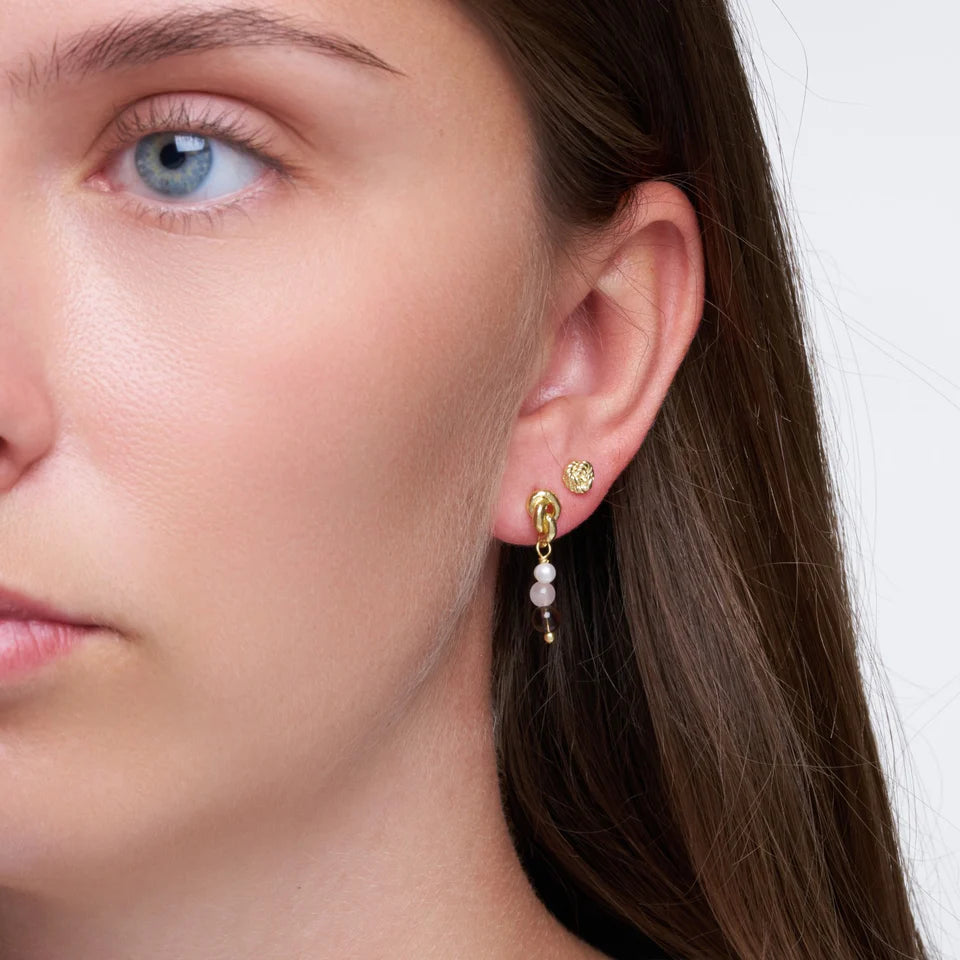 Pure By Nat - Anais Ædelstens Øreringe - Guldbelagt Smoky